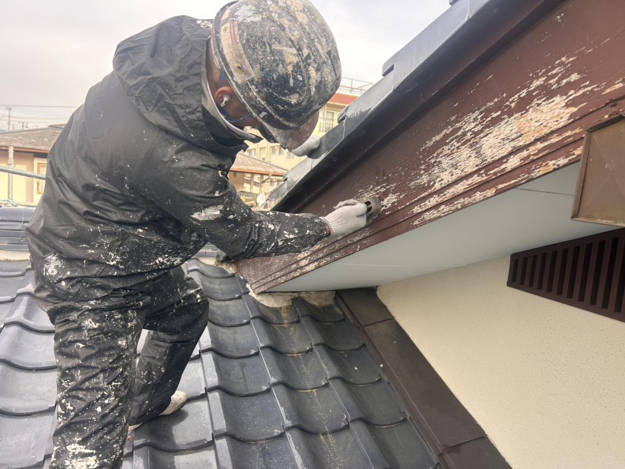 さて、今日は福島市での破風のケレン作業となります!木部はキシラデコールで仕上げると呼吸もでき自然な風合いで劣化するので、いつもはキシラで仕上げるのですが、木部用の下塗り材が入っていないとこのようにバリバリに剥がれて来ます。
