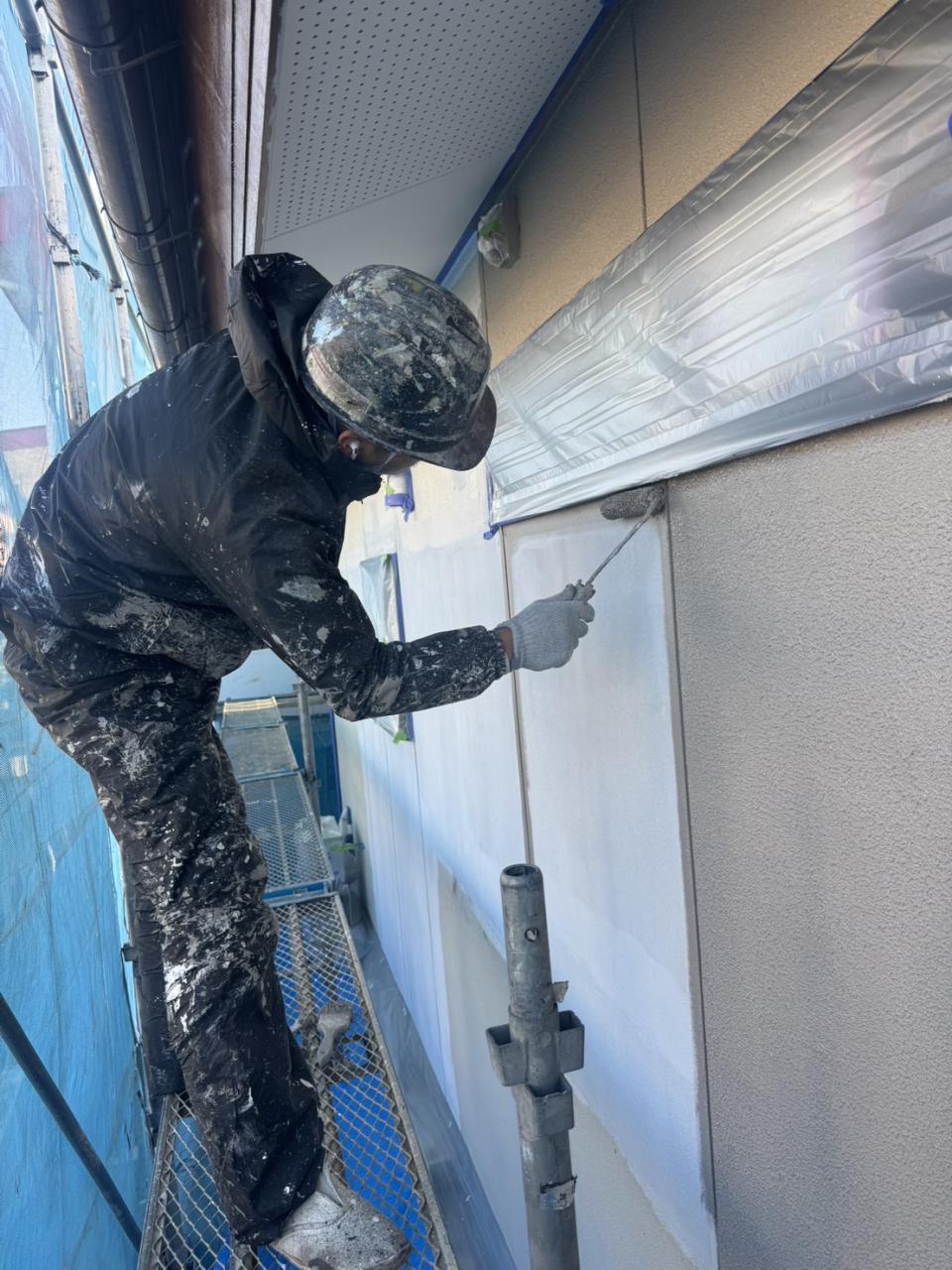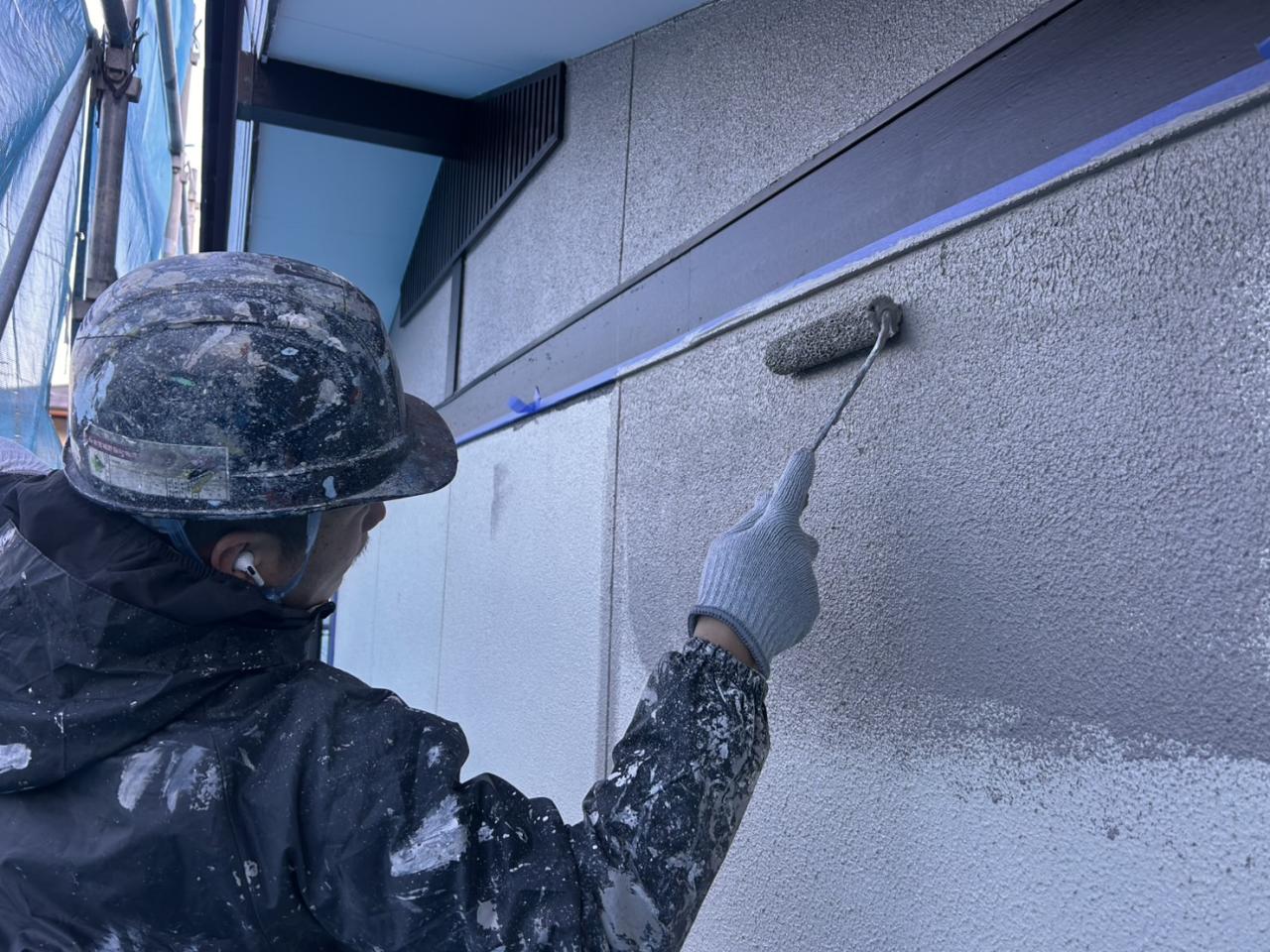 お世話になります!株式会社S-rowの安倍です!本日は福島県福島市で外壁塗装の仕上げ塗りを行ってます!