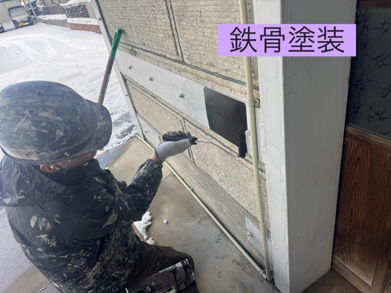 今日も鉄骨の下塗り作業です😁鉄骨のCチャンの中まで、掃除しながら丁寧に塗り上げていきます!